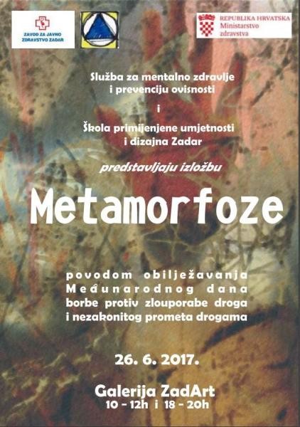 Učeničke radove nastale u suradnji Službe za mentalno zdravlje i prevenciju ovisnosti i Škole za primijenjenu umjetnost i dizajn možete pogledati 26. lipnja od 10 do 12 i od 18 do 20 sati u galeriji ZadArt na izložbi pod nazivom Metamorfoze.