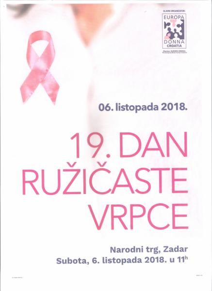 Dan ružičaste vrpce- Narodni trg Zadar – subota 06. listopada 2018.u 11.00 sati